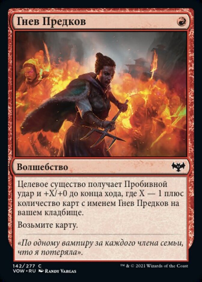 | Rules | Target creature gains trample and gets +X/+0 until end of turn, where X is 1 plus the number of cards named Ancestral Anger in your graveyard. Draw a card. |