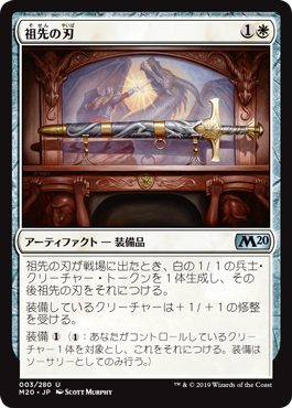 | Rules | When Ancestral Blade enters the battlefield, create a 1/1 white Soldier creature token, then attach Ancestral Blade to it. Equipped creature gets +1/+1. Equip (: Attach to target creature you control. Equip only as a sorcery.) |