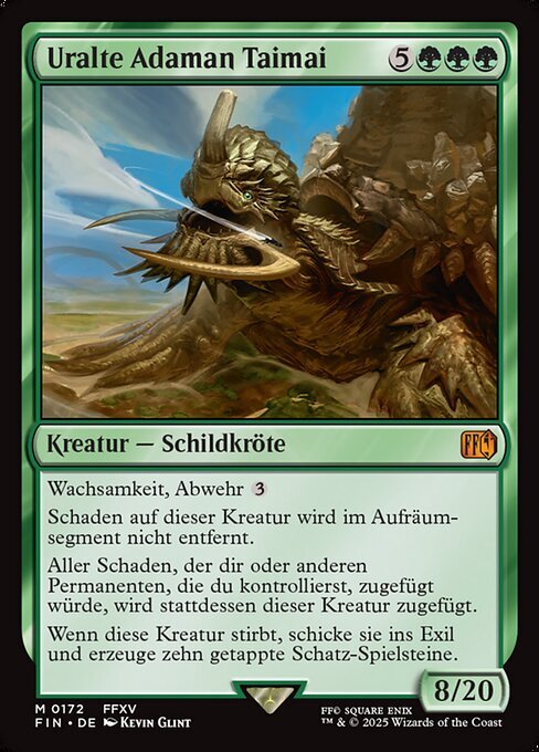 | Rules | Vigilance, ward Damage isn't removed from this creature during cleanup steps. All damage that would be dealt to you and other permanents you control is dealt to this creature instead. When this creature dies, exile it and create ten tapped Treasure tokens. |