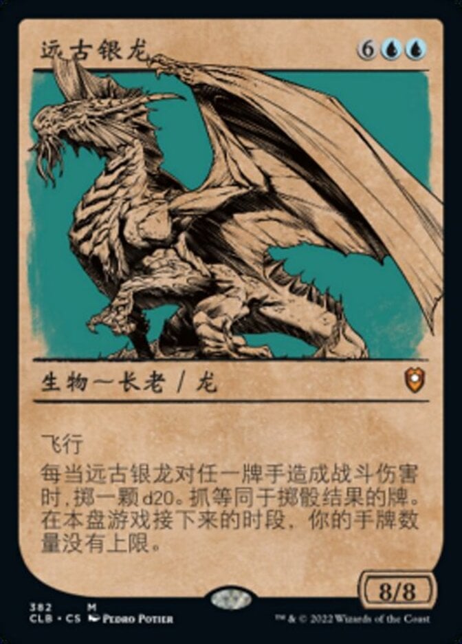 | Rules | Flying Whenever Ancient Silver Dragon deals combat damage to a player, roll a d20. Draw cards equal to the result. You have no maximum hand size for the rest of the game. |