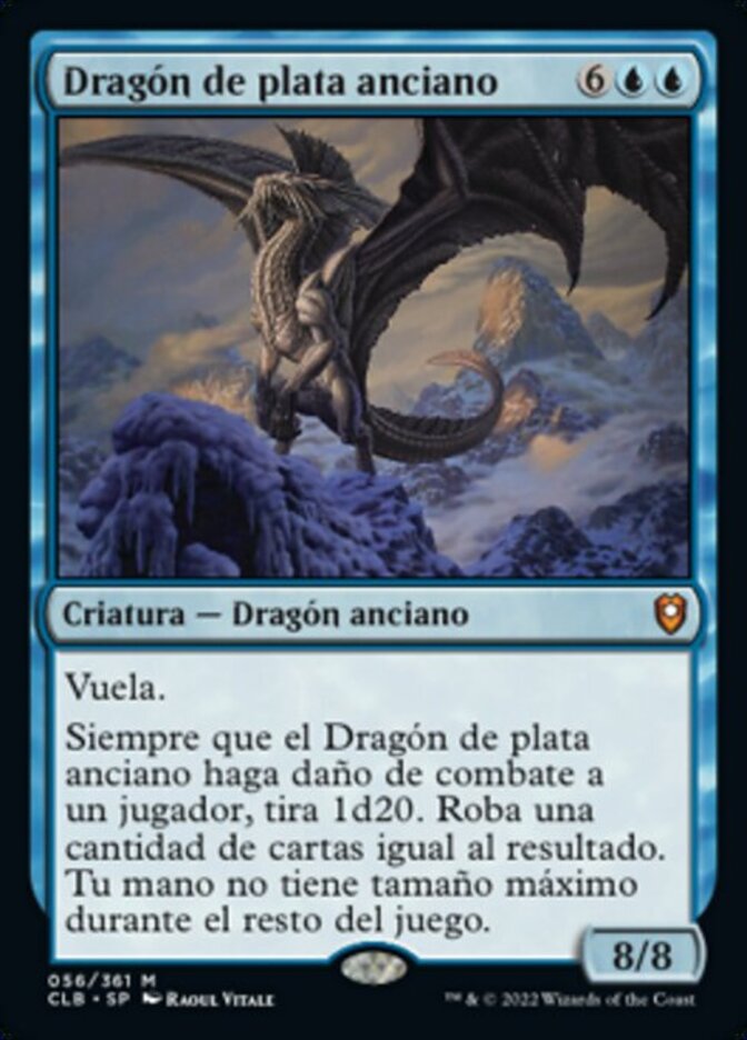 | Rules | Flying Whenever Ancient Silver Dragon deals combat damage to a player, roll a d20. Draw cards equal to the result. You have no maximum hand size for the rest of the game. |