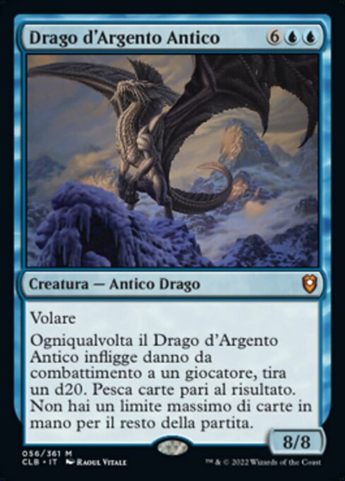 | Rules | Flying Whenever Ancient Silver Dragon deals combat damage to a player, roll a d20. Draw cards equal to the result. You have no maximum hand size for the rest of the game. |