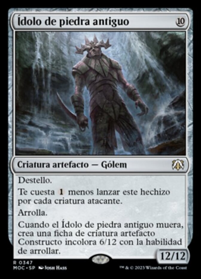 | Rules | Flash This spell costs less to cast for each attacking creature. Trample When Ancient Stone Idol dies, create a 6/12 colorless Construct artifact creature token with trample. |
