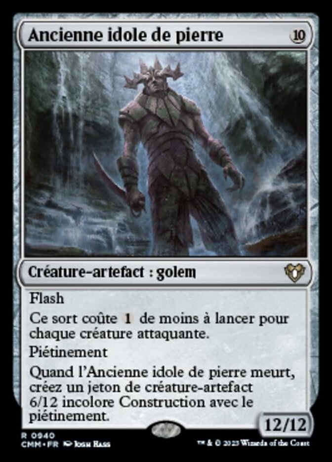 | Rules | Flash This spell costs less to cast for each attacking creature. Trample When Ancient Stone Idol dies, create a 6/12 colorless Construct artifact creature token with trample. |