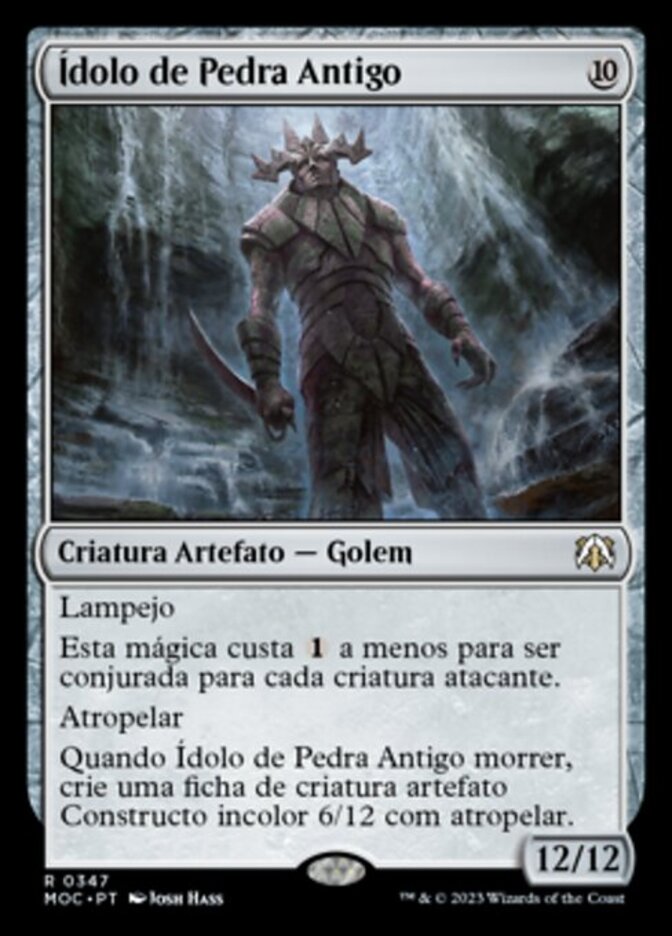 When Ancient Stone Idol dies, create a 6/12 colorless Construct artifact creature token with trample.