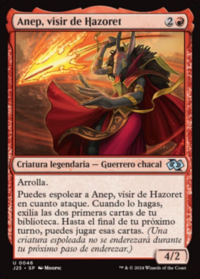 | Rules | Trample You may exert Anep, Vizier of Hazoret as it attacks. When you do, exile the top two cards of your library. Until the end of your next turn, you may play those cards. (An exerted creature won't untap during your next untap step.) |