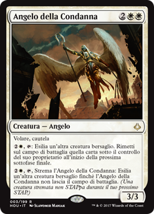 | Rules | Flying, vigilance , : Exile another target creature. Return that card to the battlefield under its owner's control at the beginning of the next end step. , , Exert Angel of Condemnation: Exile another target creature until Angel of Condemnation leaves the battlefield. (An exerted creature won't untap during your next untap step.) |