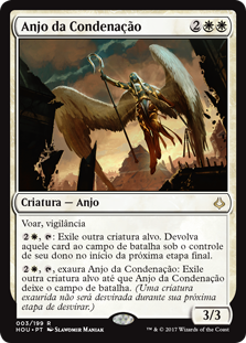 | Rules | Flying, vigilance , : Exile another target creature. Return that card to the battlefield under its owner's control at the beginning of the next end step. , , Exert Angel of Condemnation: Exile another target creature until Angel of Condemnation leaves the battlefield. (An exerted creature won't untap during your next untap step.) |