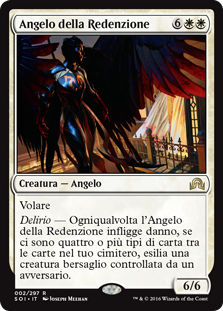 | Rules | Flying Delirium — Whenever Angel of Deliverance deals damage, if there are four or more card types among cards in your graveyard, exile target creature an opponent controls. |