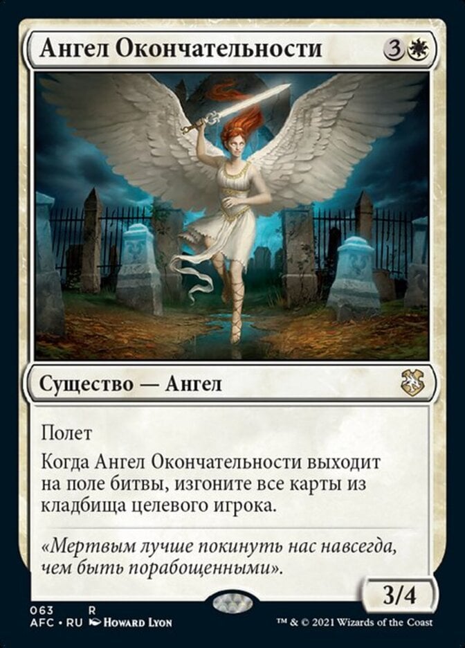 | Rules | Flying When Angel of Finality enters the battlefield, exile target player's graveyard. |