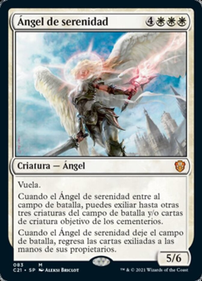 | Rules | Flying When Angel of Serenity enters the battlefield, you may exile up to three other target creatures from the battlefield and/or creature cards from graveyards. When Angel of Serenity leaves the battlefield, return the exiled cards to their owners' hands. |