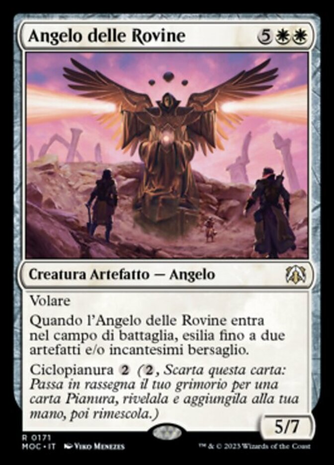 | Rules | Flying When Angel of the Ruins enters the battlefield, exile up to two target artifacts and/or enchantments. Plainscycling (, Discard this card: Search your library for a Plains card, reveal it, put it into your hand, then shuffle.) |