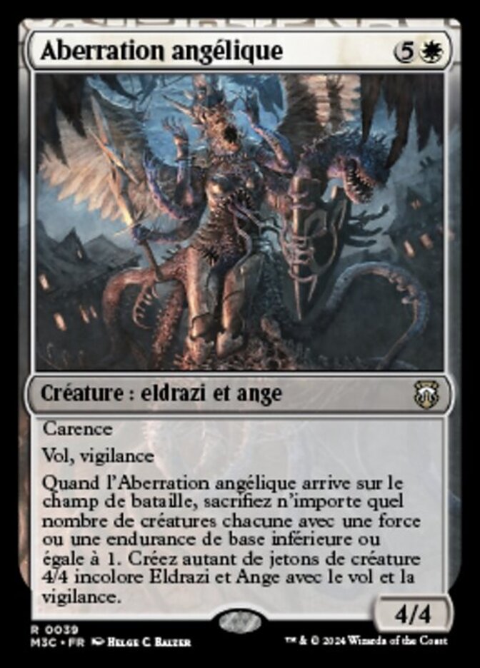 | Rules | Devoid Flying, vigilance When Angelic Aberration enters the battlefield, sacrifice any number of creatures each with base power or toughness 1 or less. Create that many 4/4 colorless Eldrazi Angel creature tokens with flying and vigilance. |