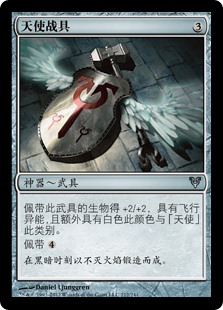 | Rules | Equipped creature gets +2/+2, has flying, and is a white Angel in addition to its other colors and types. Equip (: Attach to target creature you control. Equip only as a sorcery.) |