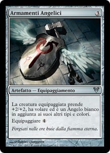 | Rules | Equipped creature gets +2/+2, has flying, and is a white Angel in addition to its other colors and types. Equip (: Attach to target creature you control. Equip only as a sorcery.) |