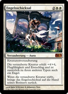 | Rules | Enchant creature Enchanted creature gets +4/+4, has flying and first strike, and is an Angel in addition to its other types. When enchanted creature dies, return Angelic Destiny to its owner's hand. |