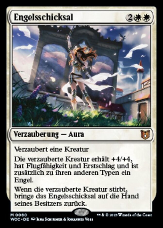 | Rules | Enchant creature Enchanted creature gets +4/+4, has flying and first strike, and is an Angel in addition to its other types. When enchanted creature dies, return Angelic Destiny to its owner's hand. |
