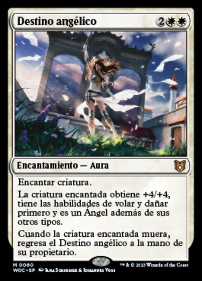 | Rules | Enchant creature Enchanted creature gets +4/+4, has flying and first strike, and is an Angel in addition to its other types. When enchanted creature dies, return Angelic Destiny to its owner's hand. |