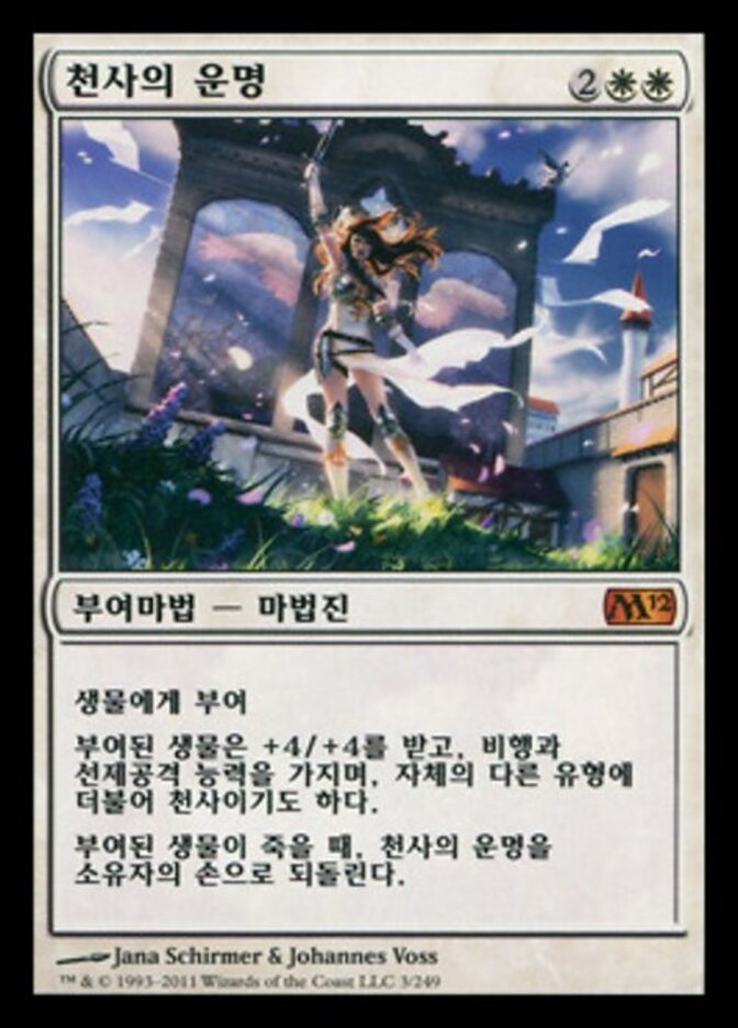 | Rules | Enchant creature Enchanted creature gets +4/+4, has flying and first strike, and is an Angel in addition to its other types. When enchanted creature dies, return Angelic Destiny to its owner's hand. |
