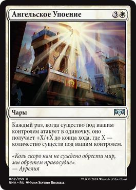 | Rules | Whenever a creature you control attacks alone, it gets +X/+X until end of turn, where X is the number of creatures you control. |