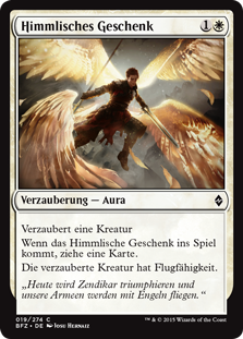 | Rules | Enchant creature When Angelic Gift enters the battlefield, draw a card. Enchanted creature has flying. |
