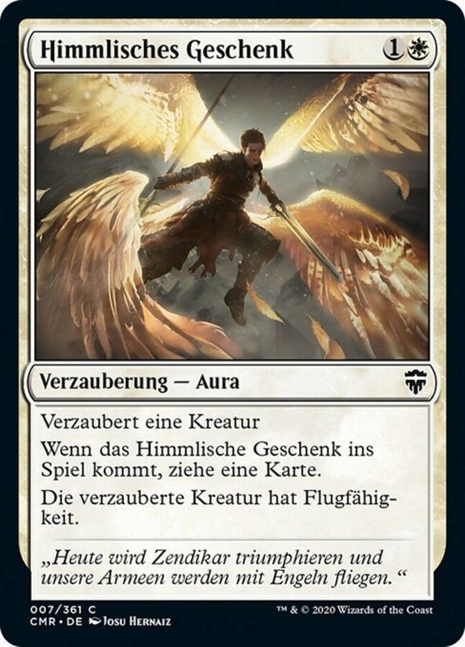 | Rules | Enchant creature When Angelic Gift enters the battlefield, draw a card. Enchanted creature has flying. |