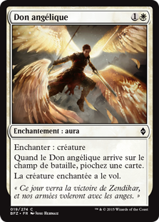 | Rules | Enchant creature When Angelic Gift enters the battlefield, draw a card. Enchanted creature has flying. |