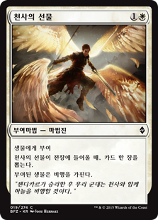 | Rules | Enchant creature When Angelic Gift enters the battlefield, draw a card. Enchanted creature has flying. |