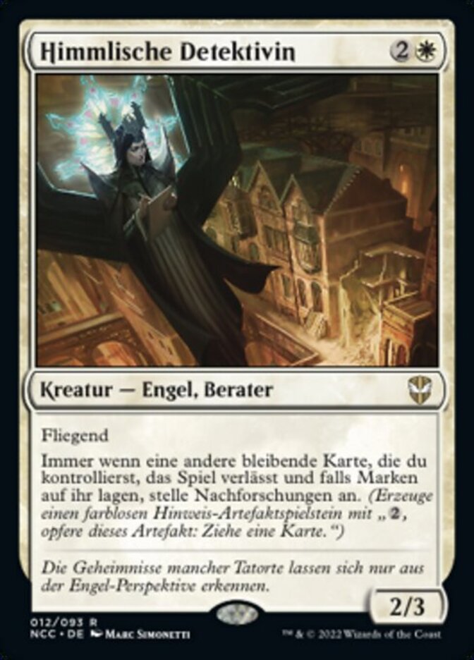 | Rules | Flying Whenever another permanent you control leaves the battlefield, if it had counters on it, investigate. (Create a colorless Clue artifact token with ", Sacrifice this artifact: Draw a card.") |