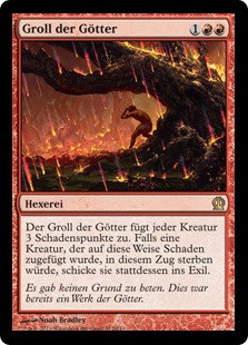 Rules Anger of the Gods deals 3 damage to each creature. If a creature dealt damage this way would die this turn, exile it instead.