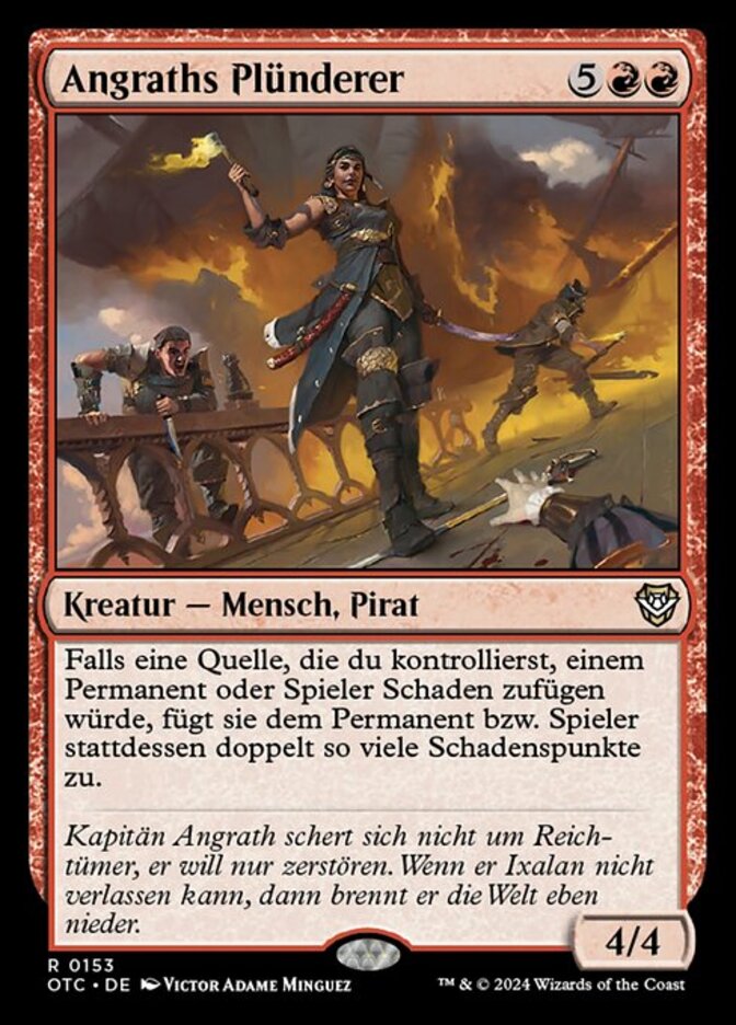 | Flavor | Captain Angrath cares less about treasure than mayhem. If he can't leave Ixalan, he'll burn the plane down. |
