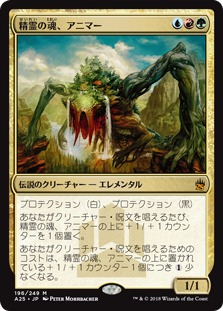 | Rules | Protection from white and from black Whenever you cast a creature spell, put a +1/+1 counter on Animar, Soul of Elements. Creature spells you cast cost less to cast for each +1/+1 counter on Animar. |