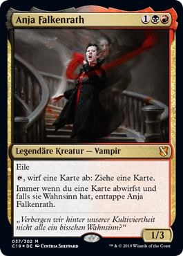 | Rules | Haste , Discard a card: Draw a card. Whenever you discard a card, if it has madness, untap Anje Falkenrath. |