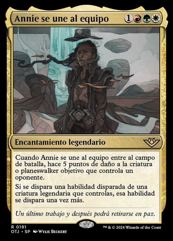 | Rules | When Annie Joins Up enters the battlefield, it deals 5 damage to target creature or planeswalker an opponent controls. If a triggered ability of a legendary creature you control triggers, that ability triggers an additional time. |