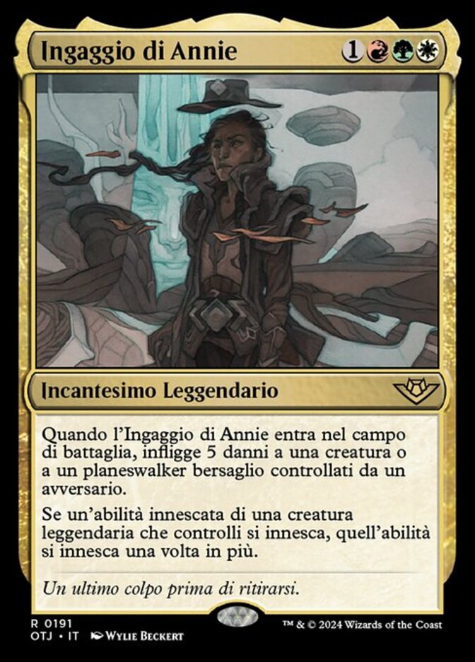 | Rules | When Annie Joins Up enters the battlefield, it deals 5 damage to target creature or planeswalker an opponent controls. If a triggered ability of a legendary creature you control triggers, that ability triggers an additional time. |