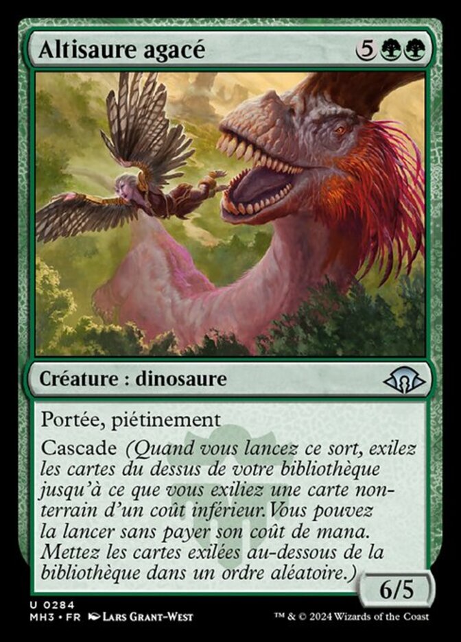 | Rules | Reach, trample Cascade (When you cast this spell, exile cards from the top of your library until you exile a nonland card that costs less. You may cast it without paying its mana cost. Put the exiled cards on the bottom of your library in a random order.) |