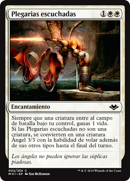 | Rules | Whenever a creature enters the battlefield under your control, you gain 1 life. If Answered Prayers isn't a creature, it becomes a 3/3 Angel creature with flying in addition to its other types until end of turn. |