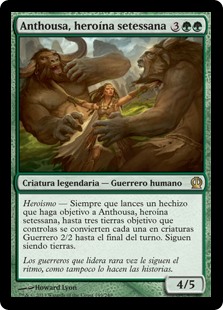 | Rules | Heroic — Whenever you cast a spell that targets Anthousa, Setessan Hero, up to three target lands you control each become 2/2 Warrior creatures until end of turn. They're still lands. |