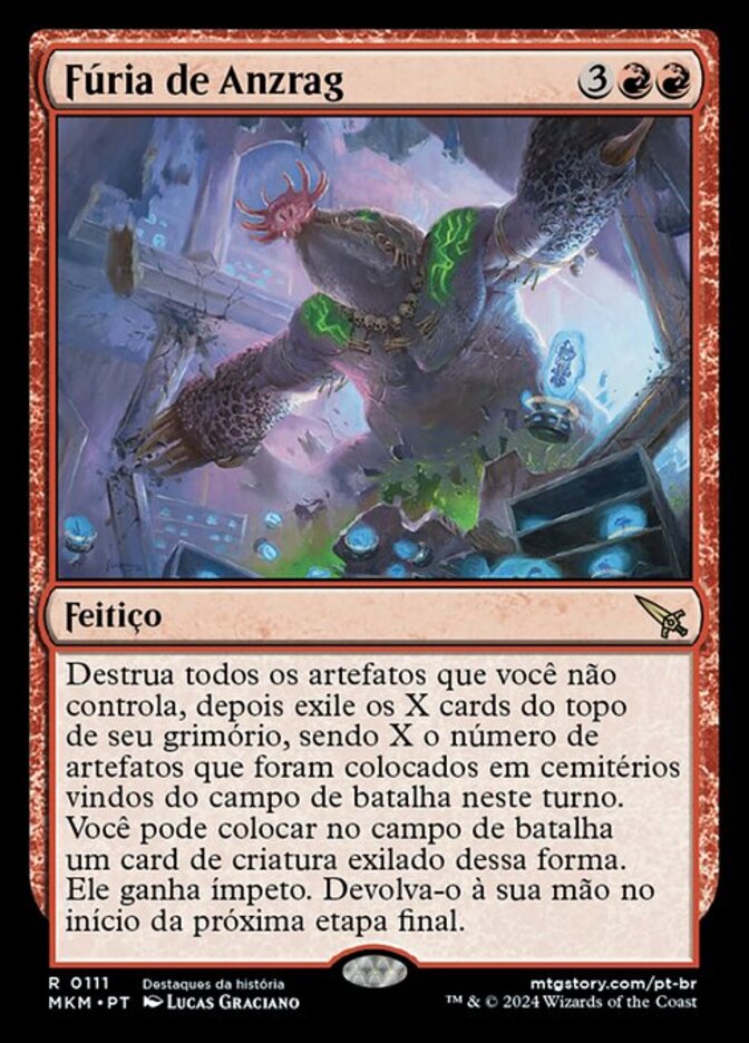 | Rules | Destroy all artifacts you don't control, then exile the top X cards of your library, where X is the number of artifacts that were put into graveyards from the battlefield this turn. You may put a creature card exiled this way onto the battlefield. It gains haste. Return it to your hand at the beginning of the next end step. |