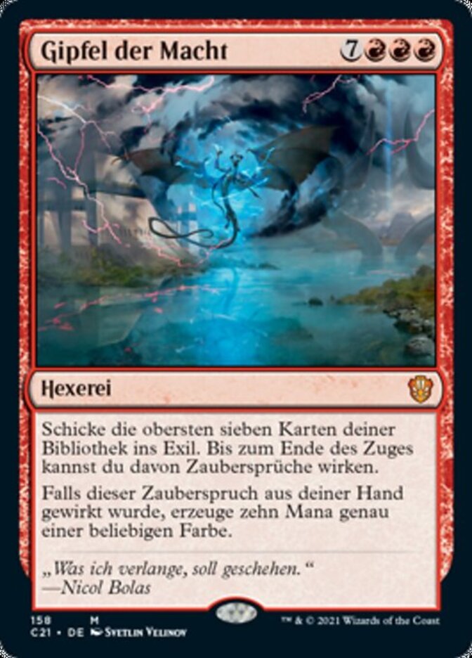 | Rules | Exile the top seven cards of your library. Until end of turn, you may cast spells from among them. If this spell was cast from your hand, add ten mana of any one color. |