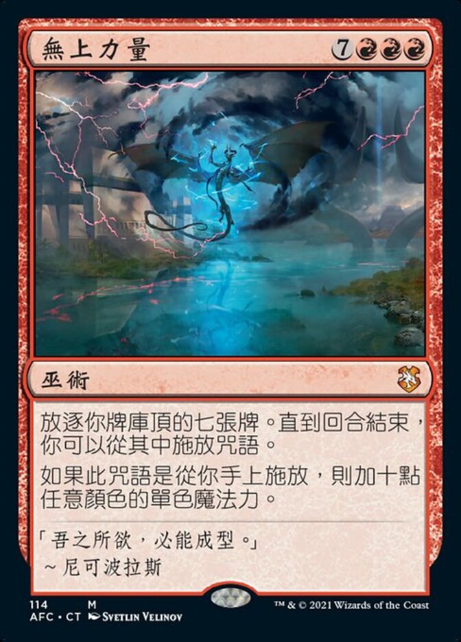| Rules | Exile the top seven cards of your library. Until end of turn, you may cast spells from among them. If this spell was cast from your hand, add ten mana of any one color. |