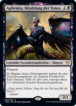 | Rules | Flying At the beginning of your end step, you may exile an enchantment card from your graveyard. If you do, create a 2/2 black Zombie creature token. |