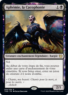 | Rules | Flying At the beginning of your end step, you may exile an enchantment card from your graveyard. If you do, create a 2/2 black Zombie creature token. |