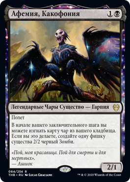 | Rules | Flying At the beginning of your end step, you may exile an enchantment card from your graveyard. If you do, create a 2/2 black Zombie creature token. |