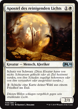 | Rules | Protection from black (This creature can't be blocked, targeted, dealt damage, enchanted, or equipped by anything black.) : Exile target card from a graveyard. |