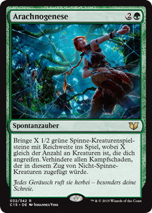 | Rules | Create X 1/2 green Spider creature tokens with reach, where X is the number of creatures attacking you. Prevent all combat damage that would be dealt this turn by non-Spider creatures. |