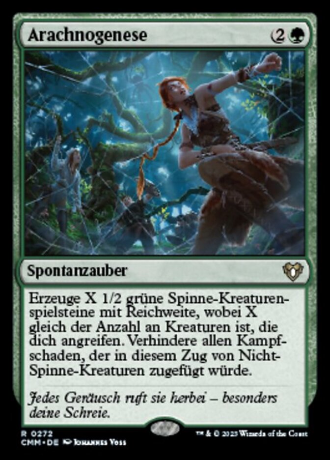 | Rules | Create X 1/2 green Spider creature tokens with reach, where X is the number of creatures attacking you. Prevent all combat damage that would be dealt this turn by non-Spider creatures. |