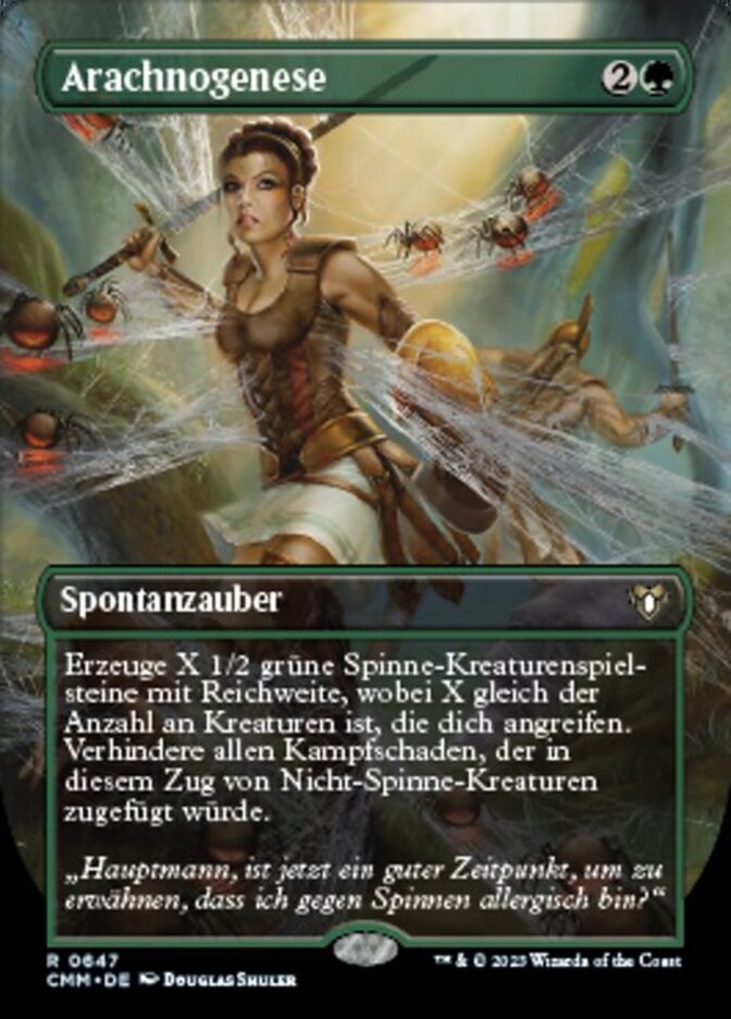 | Rules | Create X 1/2 green Spider creature tokens with reach, where X is the number of creatures attacking you. Prevent all combat damage that would be dealt this turn by non-Spider creatures. |