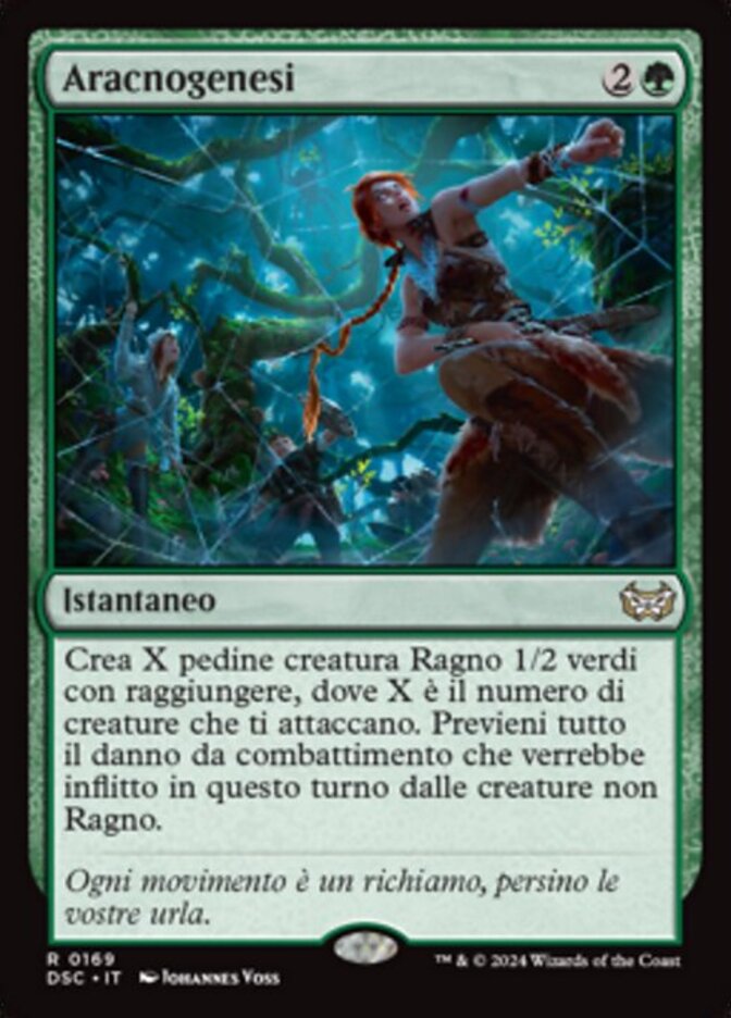 | Rules | Create X 1/2 green Spider creature tokens with reach, where X is the number of creatures attacking you. Prevent all combat damage that would be dealt this turn by non-Spider creatures. |