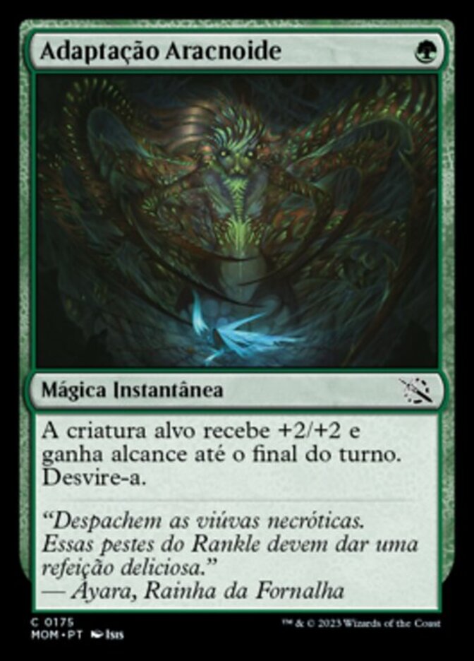 | Rules | Target creature gets +2/+2 and gains reach until end of turn. Untap it. |